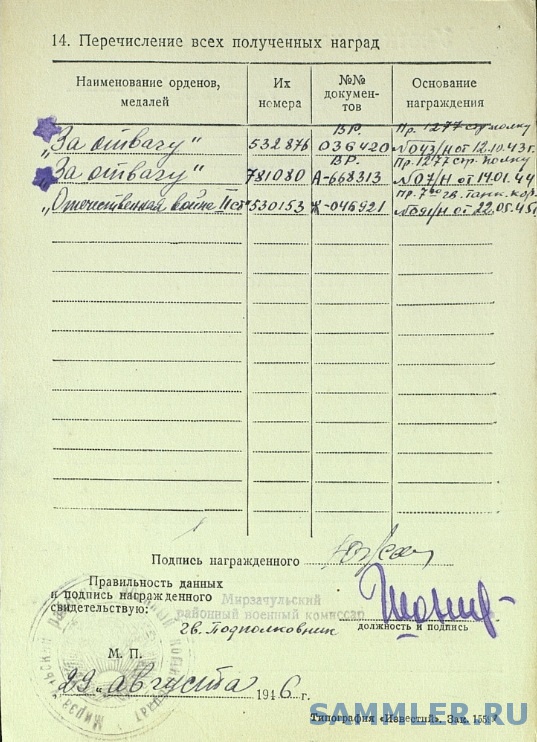 Медаль За Отвагу № 532876