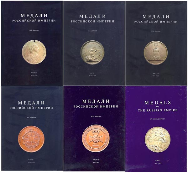 1.М.Е. Дьяков "Медали Российской империи. В 8-ми частях. (1672-1917)". (есть все части, кроме 8)