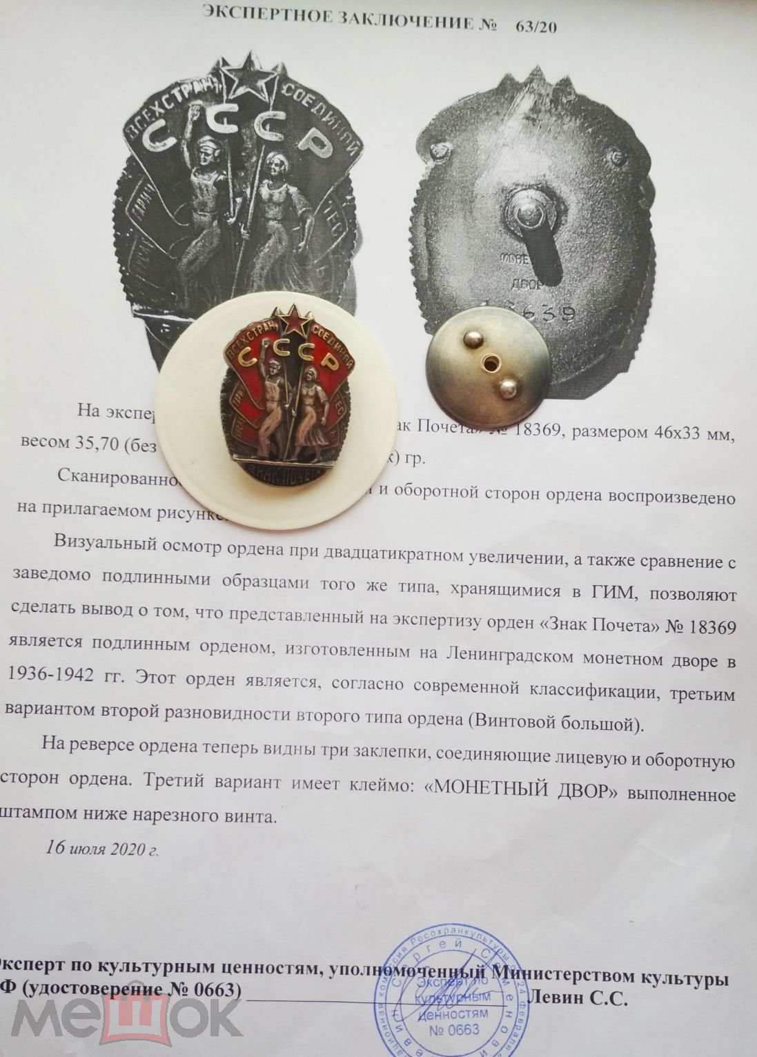 На "мешке" увидел такой документ под названием "Экспертное заключение".