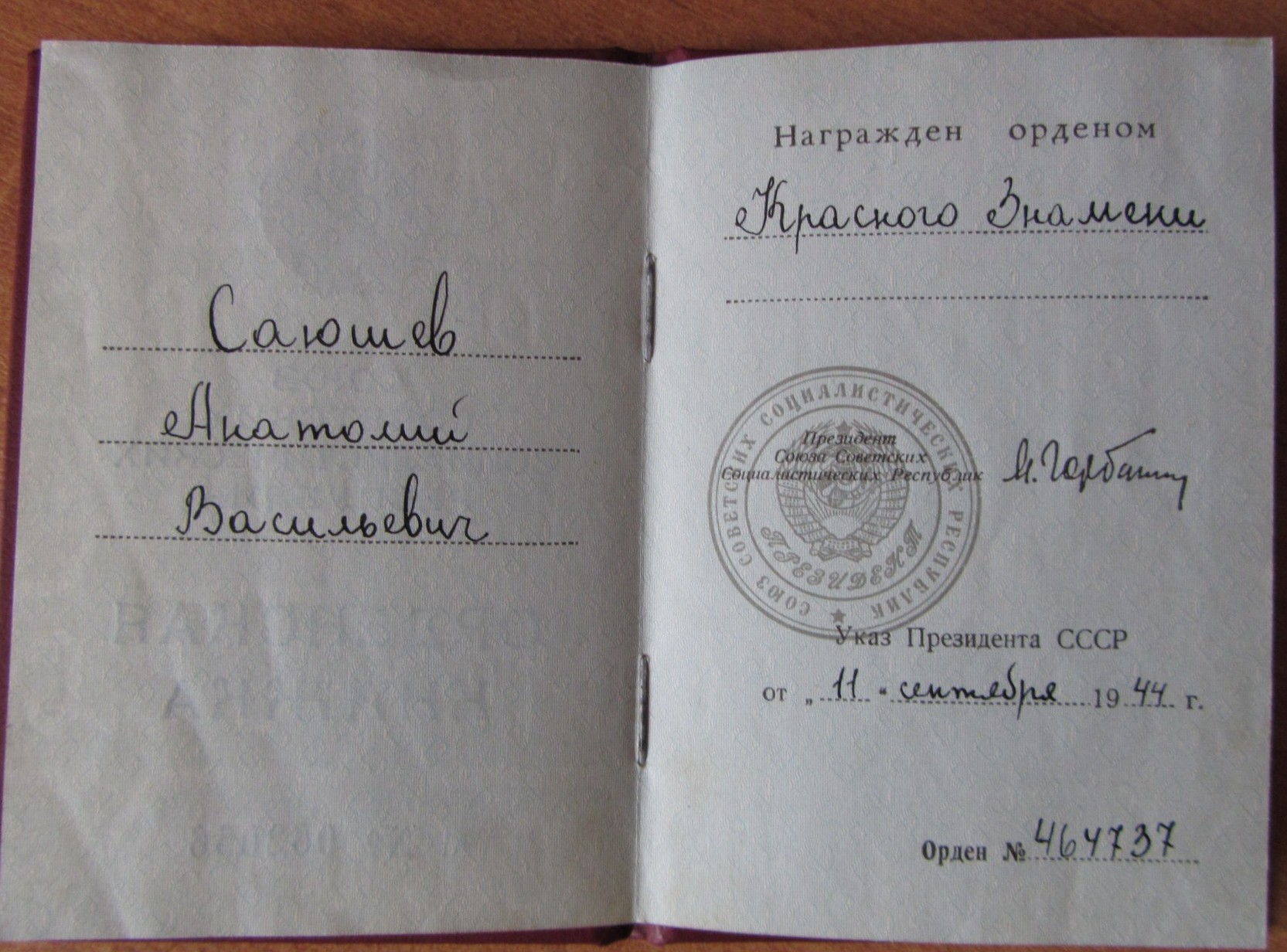 Помогите найти дедов орден БКЗ №464737 Саюшев Анатолий Васильевич. был продан в г. Мичуринск Тамбовской обл. примерно в 1996-1997 г. был продан( не знаю как назвать) родственниками.